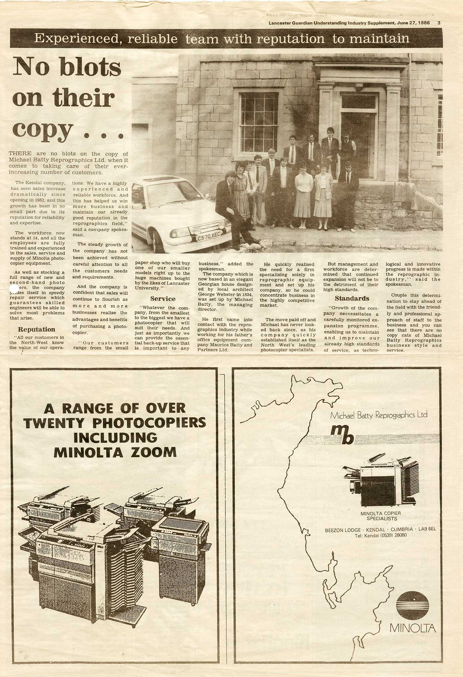 1983 – Michael Batty Reprographics was formed working from Beezon Lodge in Kendal